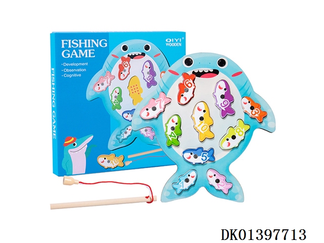 木制鲨鱼钓鱼配对游戏