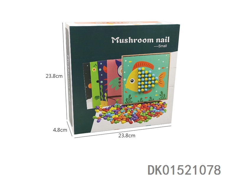 木质创意蘑菇钉拼插拼图益智玩具