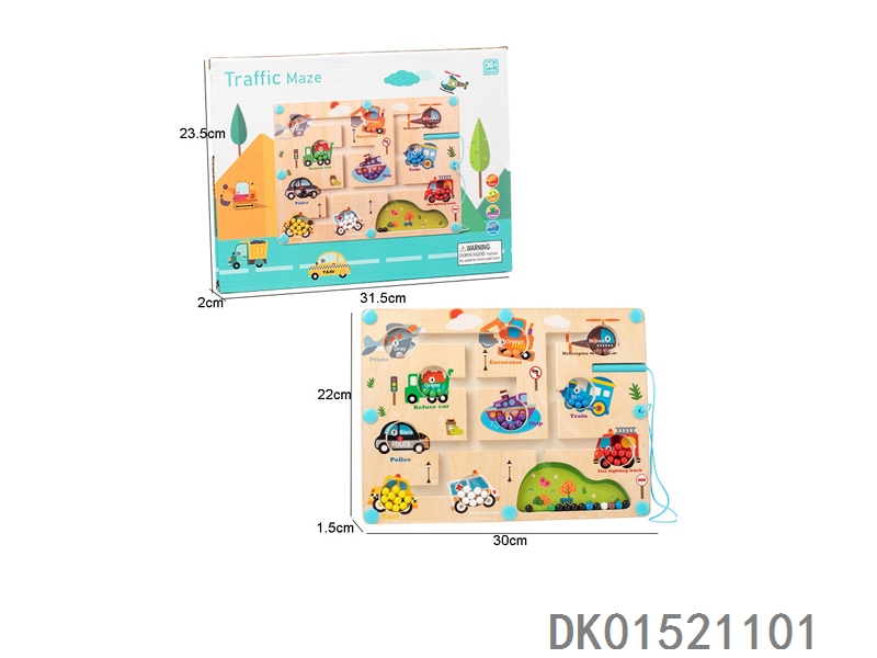木质交通图案运笔磁吸迷宫走珠玩具