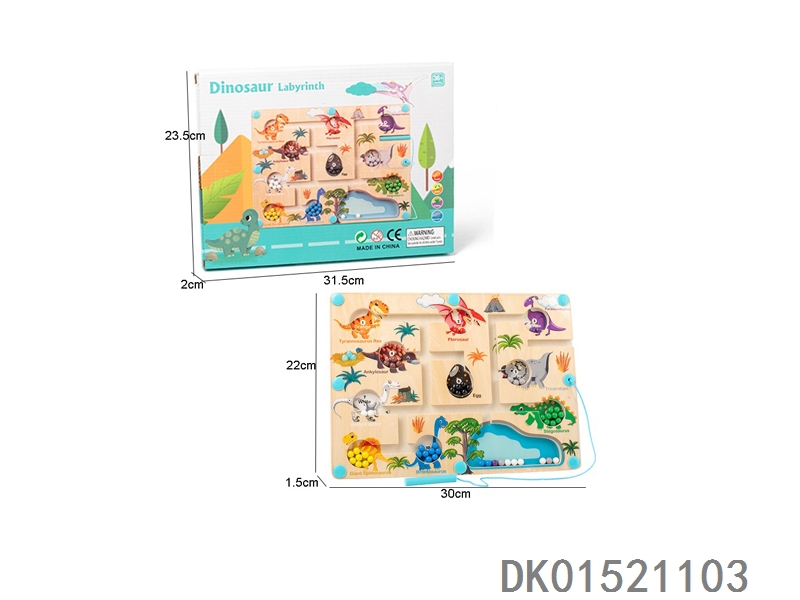 木质恐龙图案运笔磁吸迷宫走珠玩具