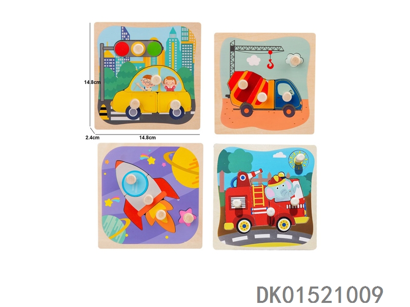 木质交通工具手抓板拼图早教益智玩具四款混装