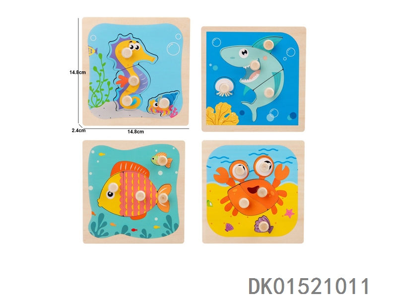 木质海洋动物手抓板拼图早教益智玩具四款混装