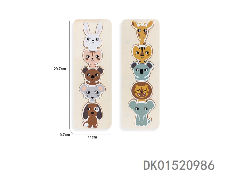 木质五合一动物拼图儿童益智玩具