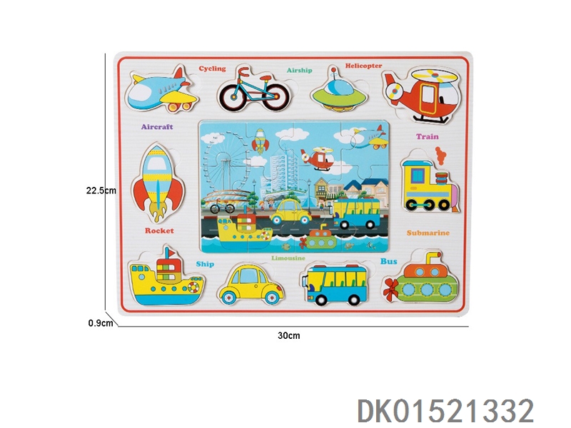 木质交通工具手抓板拼图益智玩具