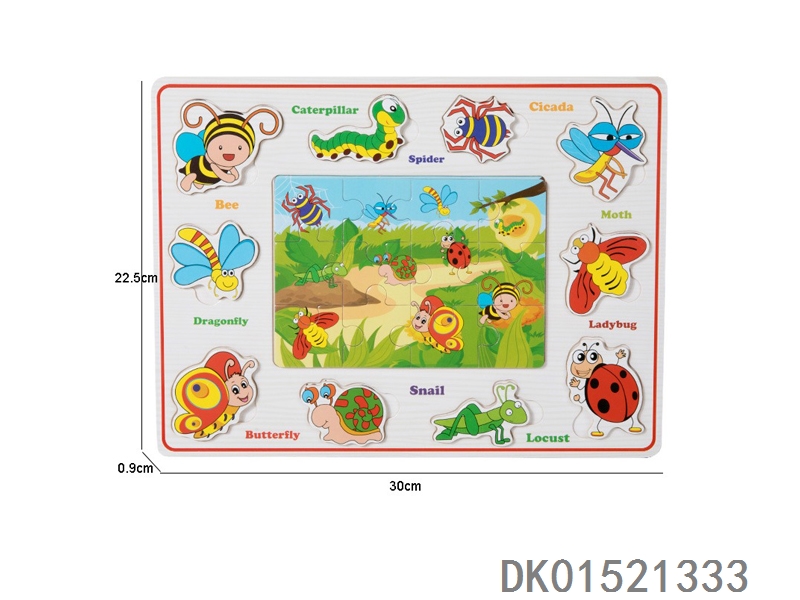 木质昆虫手抓板拼图益智玩具