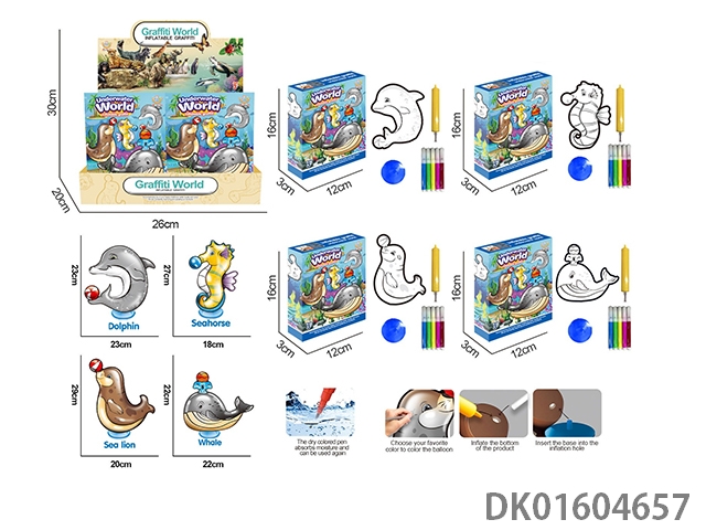 充气涂鸦海洋动物站底配管12只/盒