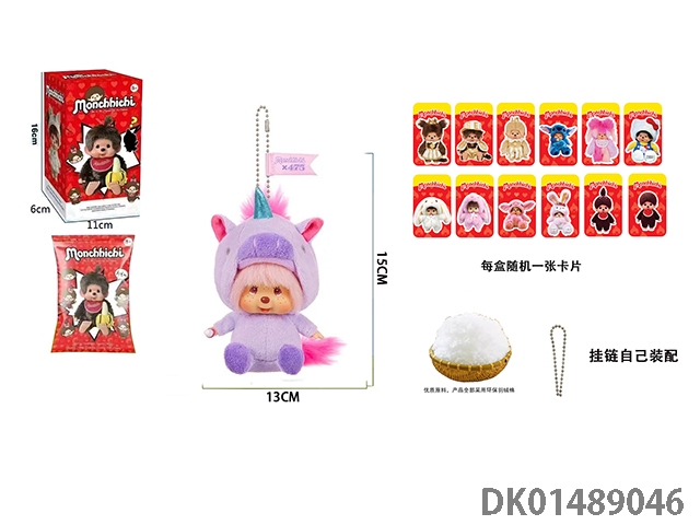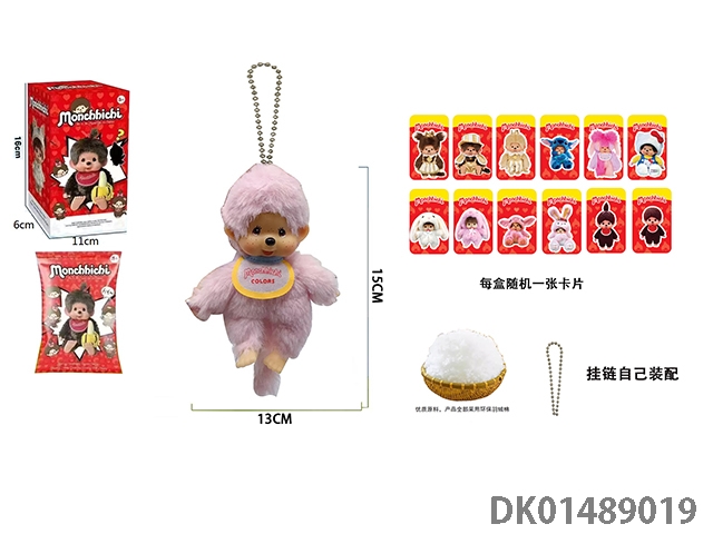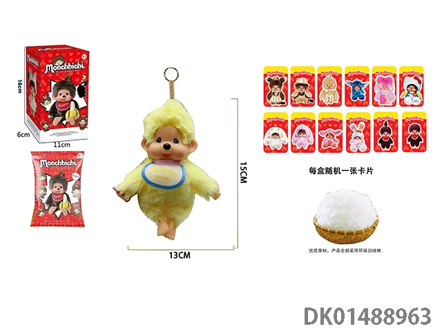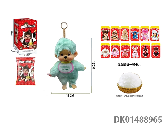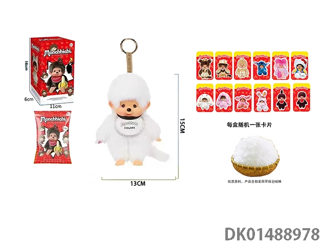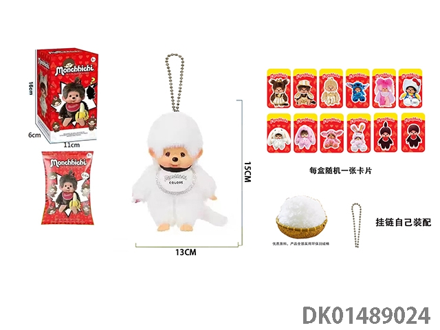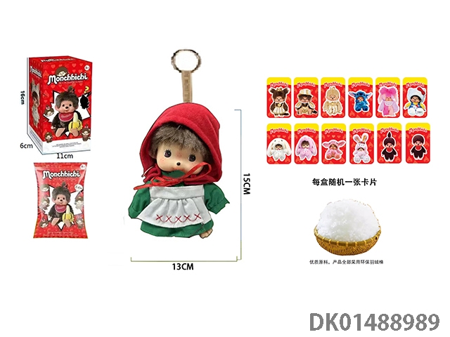 高品质1比1 节日礼物系列 高貂毛绒PP棉身搪胶脸 15CM Monchhichi奶嘴小红帽蒙奇奇。带钥匙扣 名片12款随机搭配1款