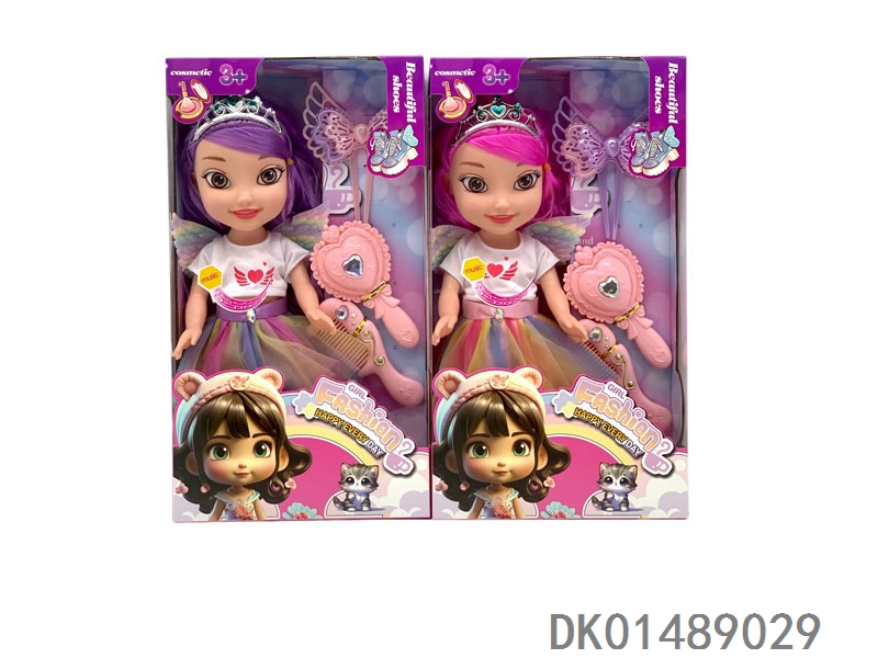 14寸全身搪胶公主娃娃3D玻璃眼珠带翅膀皇冠有音乐带发夹梳子镜子配件(2款混装)