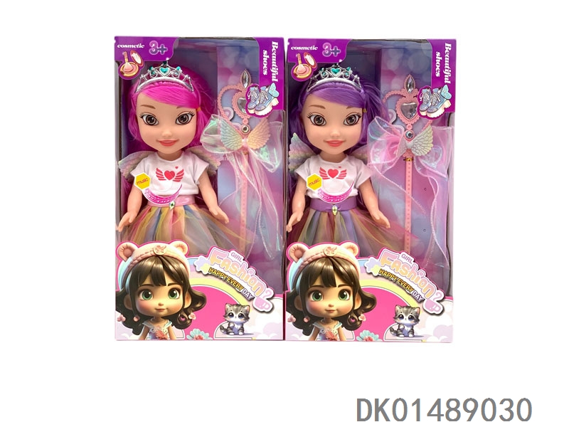 14寸全身搪胶公主娃娃3D玻璃眼珠带翅膀皇冠有音乐带魔法棒(2款混装)