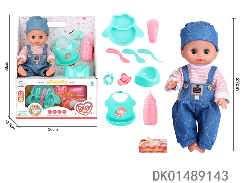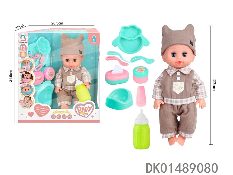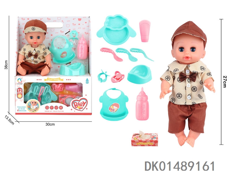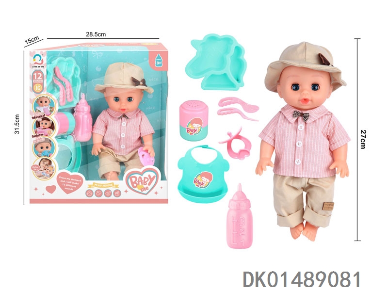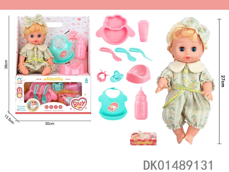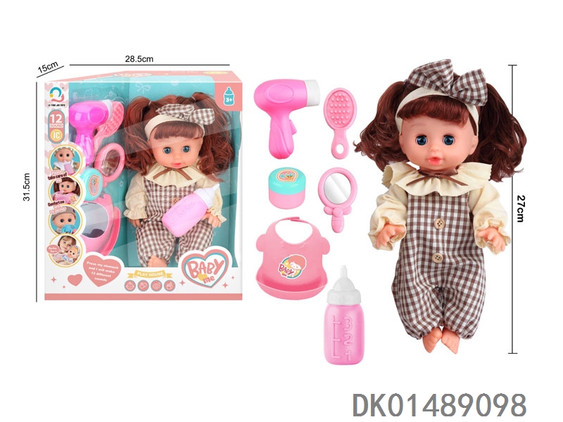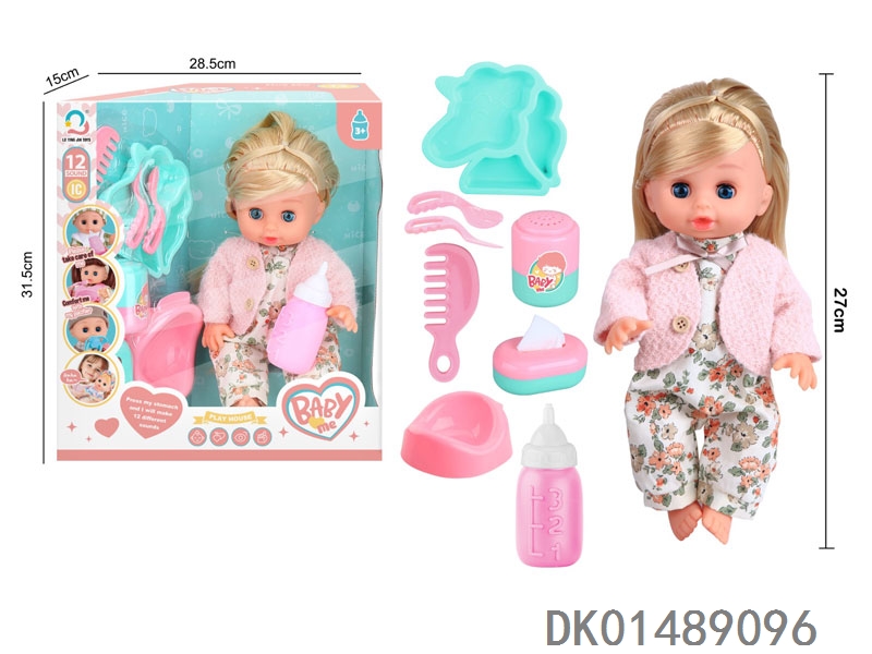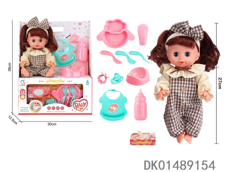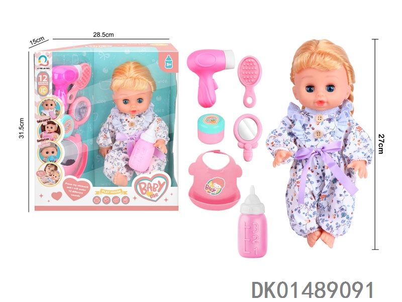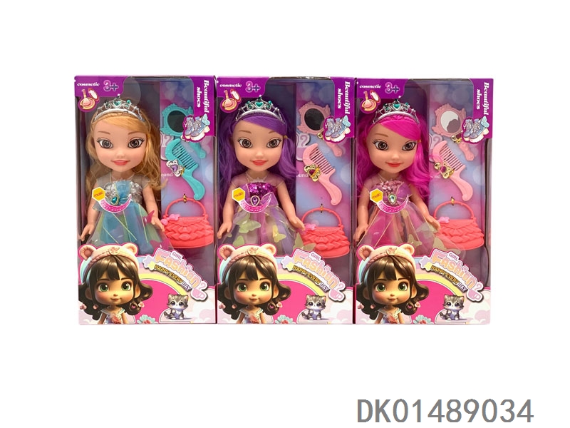 14寸搪胶手脚注塑音乐身体公主娃娃3D玻璃眼珠带皇冠有灯光音乐带镜子梳子包包配件(3款混装)