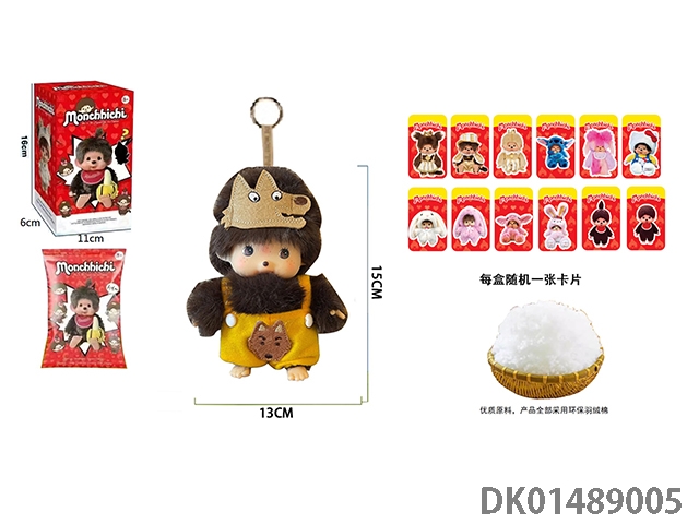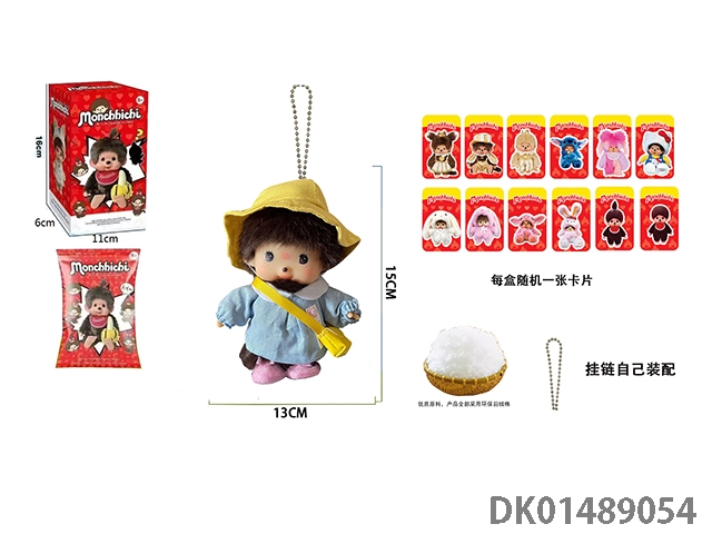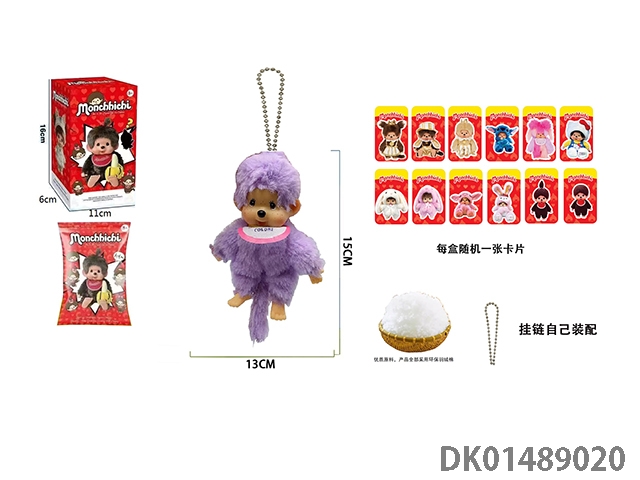 高品质1比1 节日礼物系列 高貂毛绒PP棉身搪胶脸 15CM Monchhichi奶嘴 蒙猴蒙奇奇带钥匙扣 名片12款随机搭配1款
