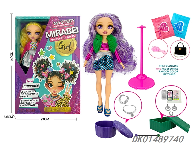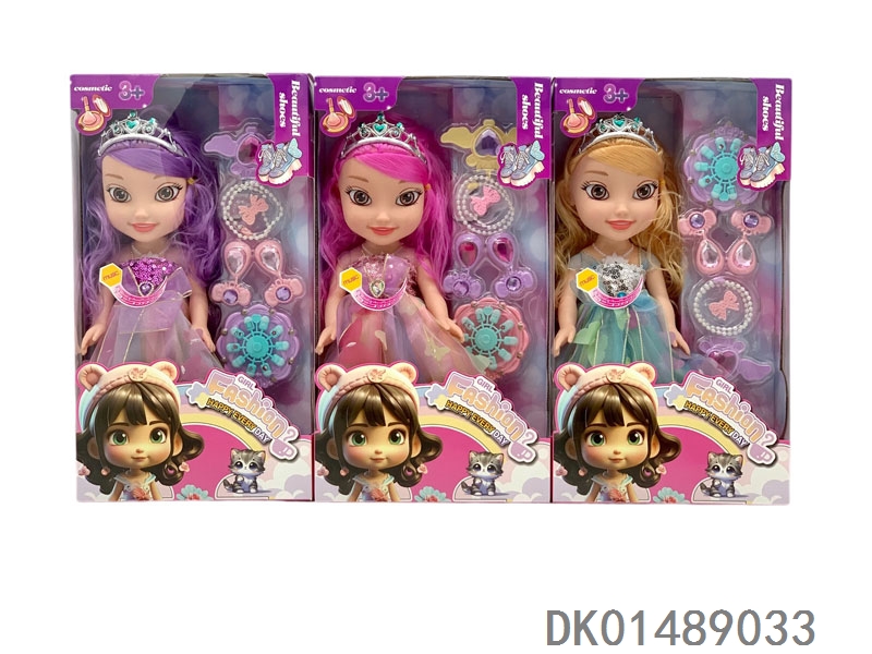 14寸搪胶手脚注塑音乐身体公主娃娃3D玻璃眼珠带皇冠有灯光音乐带耳环项链配件套装(3款混装)