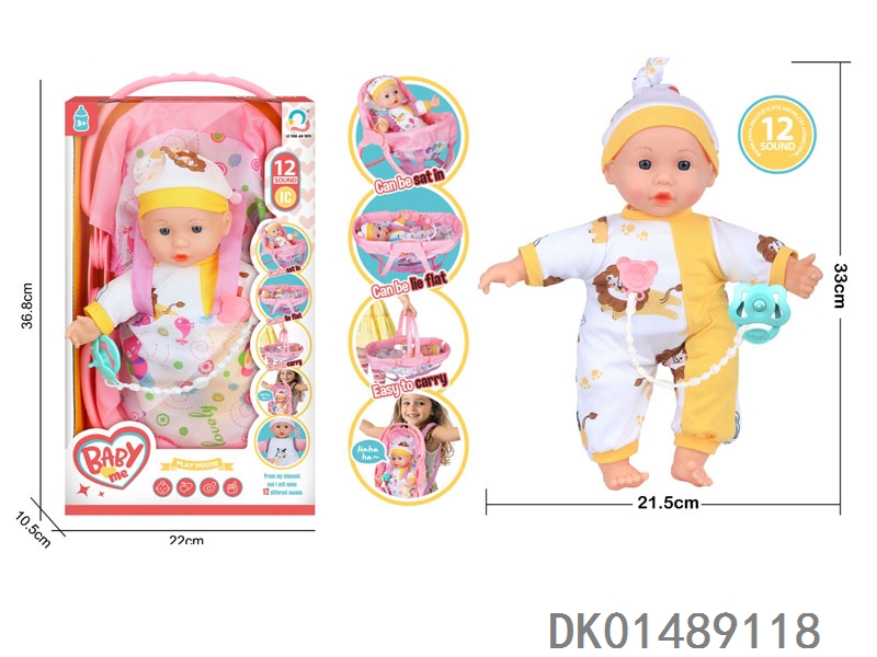 14寸弹胶头棉身娃娃+12声IC+摇篮