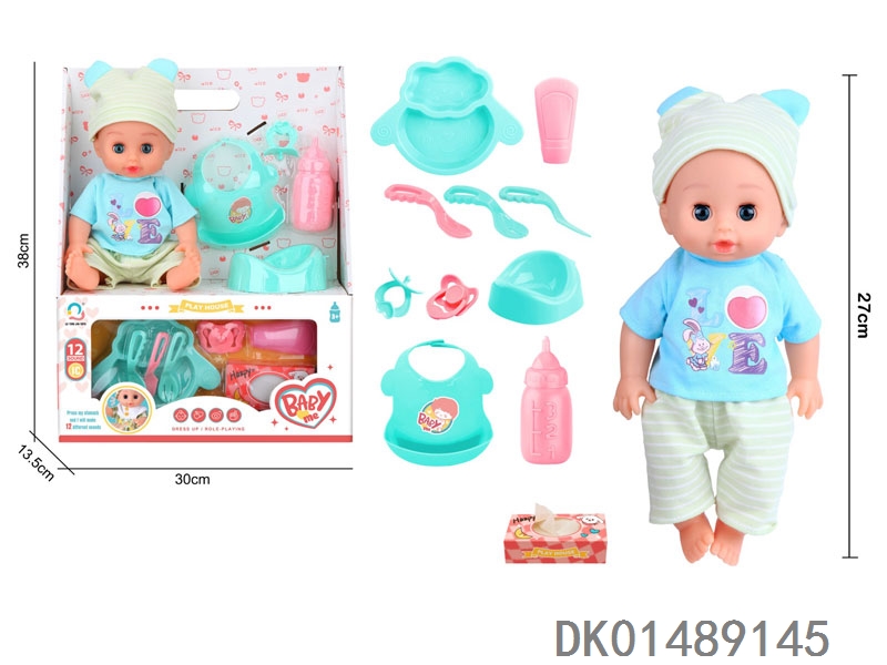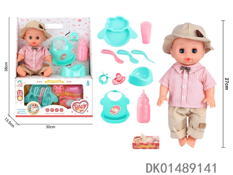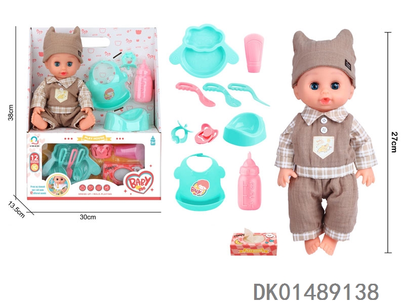 16寸定眼吹瓶身体搪胶手脚男娃娃配牛奶盒、套环、奶粉瓶、尿壶、奶瓶、骰子,带6声IC