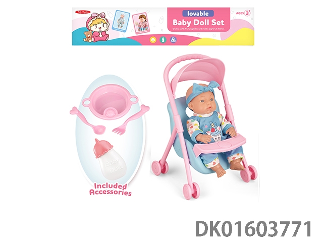 12寸公仔带IC+手推车+奶瓶+餐具,包3*AG13