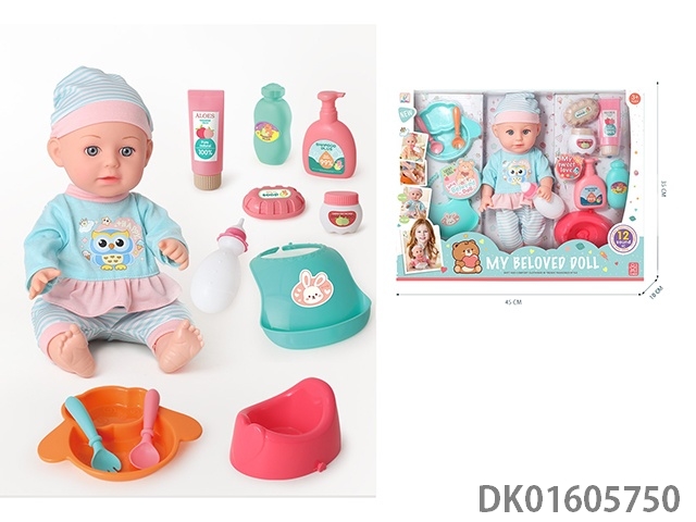 14寸搪胶12声娃娃护理套装(过家家公仔,包3粒AG13电池)