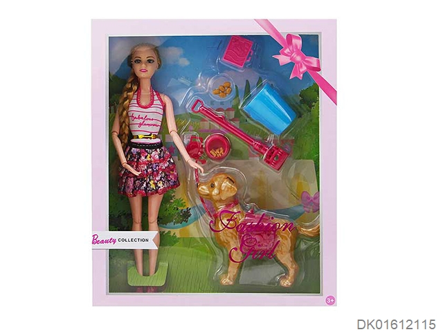 爆款热销11.5寸12关节实身长发公主带手办宠物狗套装