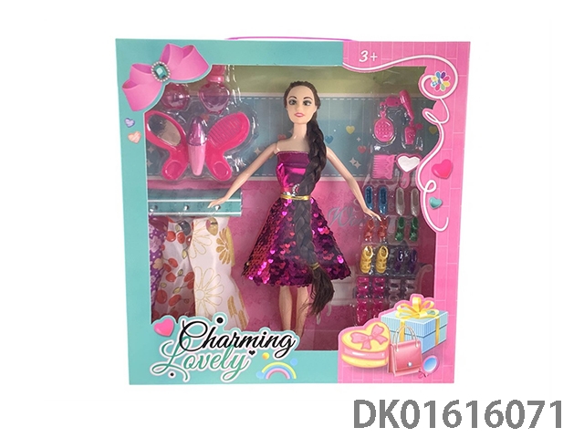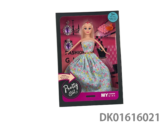 11.5寸实身长头发晚装芭比娃娃女孩配发夹+耳环(时尚芭比公主娃娃)