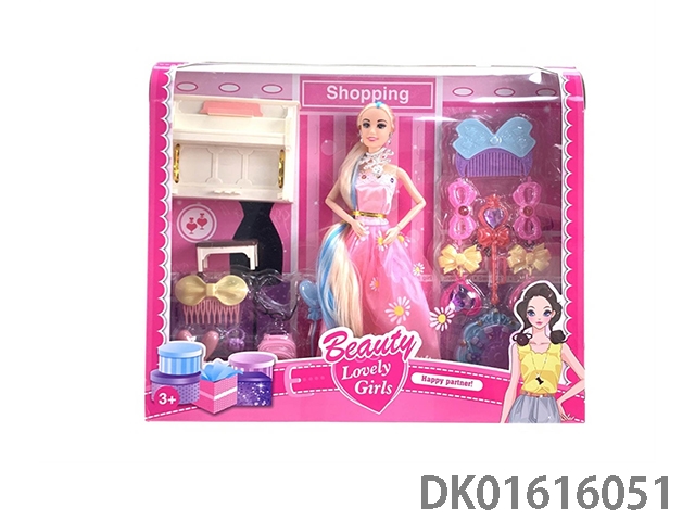 11.5寸实身长马尾晚装芭比娃娃女孩配发夹(时尚芭比公主娃娃)