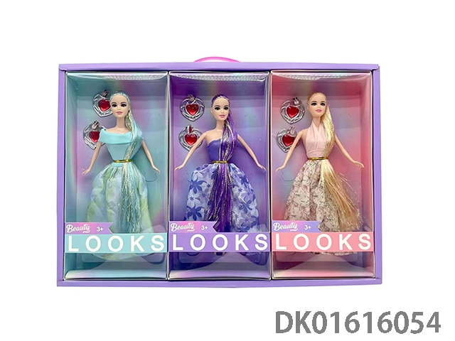 11.5寸实身活手时尚芭比娃娃长马尾加钻石耳环展示盒/3只装 11.5寸芭比礼服芭比公主娃娃