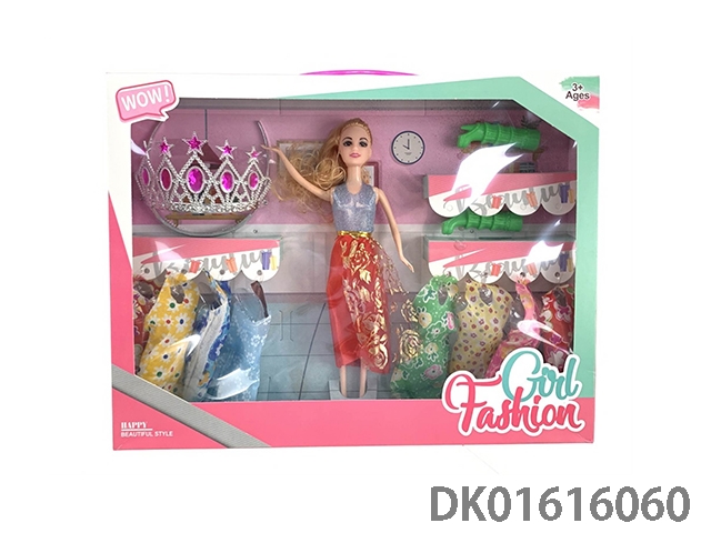 11.5寸实身晚装芭比女孩娃娃配服装+鞋子+皇冠(时尚芭比公主娃娃)