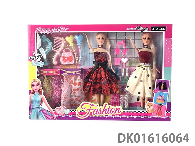 大腿11.5寸实身双人长马尾时尚芭比娃娃女孩配服装+鞋子系列+吹风筒+梳镜+香水瓶+手提包+气球(时尚芭比公主娃娃)