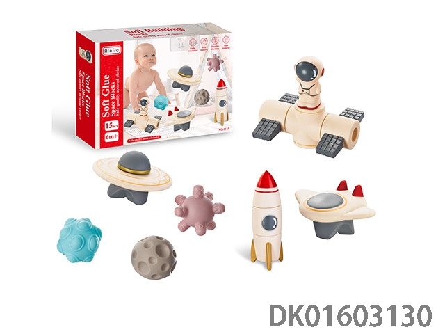 软胶(搪胶)婴幼儿益智拼插太空系列认知积木(15PCS)