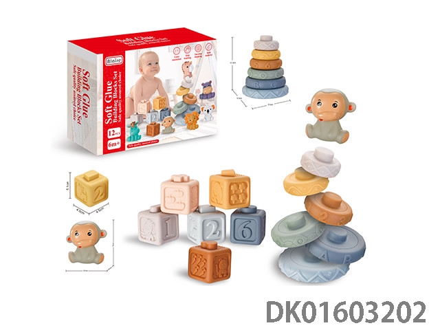 软胶(搪胶)圆角小积木+小猴子+圆饼叠叠乐套装组合