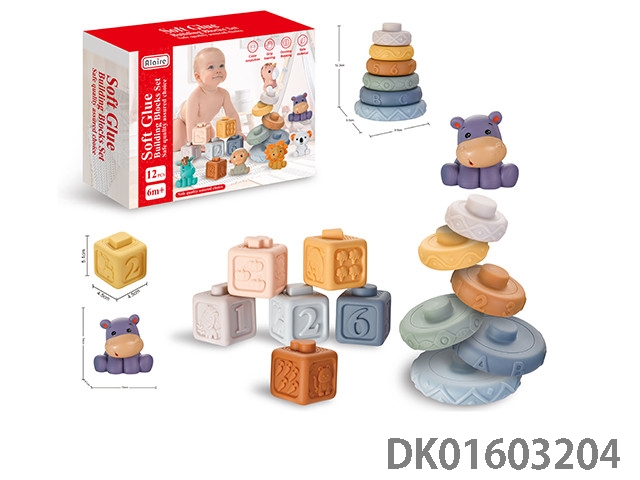 软胶(搪胶)圆角小积木+小河马+圆饼叠叠乐套装组合