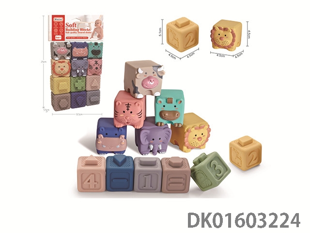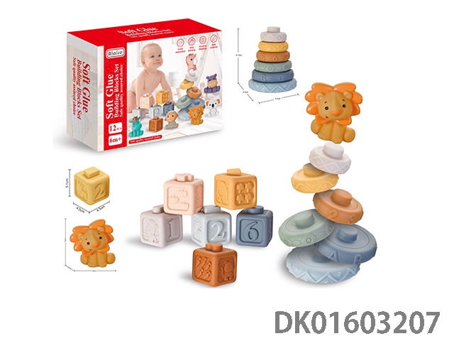 软胶(搪胶)圆角小积木+小狮子+圆饼叠叠乐套装组合