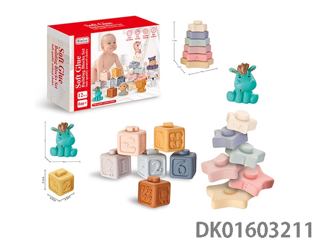 软胶(搪胶)圆角小积木+小马+星星叠叠乐套装组合