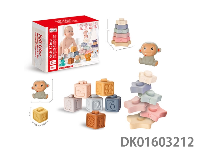 软胶(搪胶)圆角小积木+小猴子+星星叠叠乐套装组合