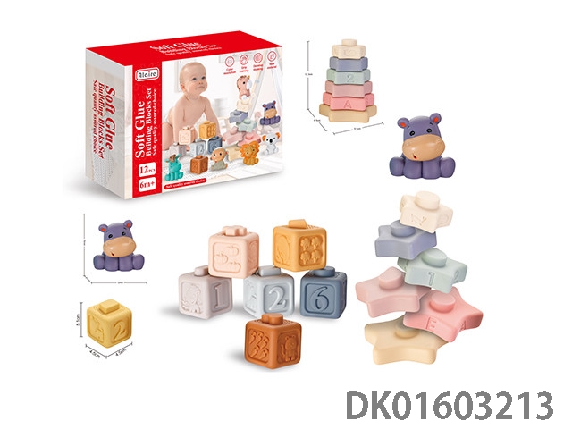 软胶(搪胶)圆角小积木+小河马+星星叠叠乐套装组合