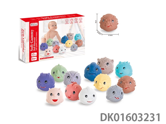 软胶(搪胶)12款恐龙造型认知捏捏乐洗澡玩具球