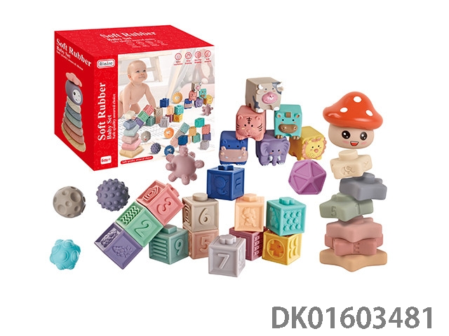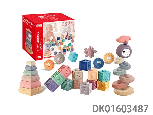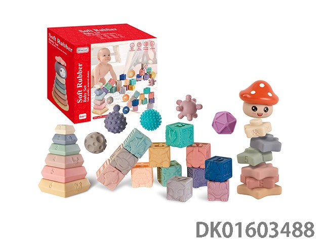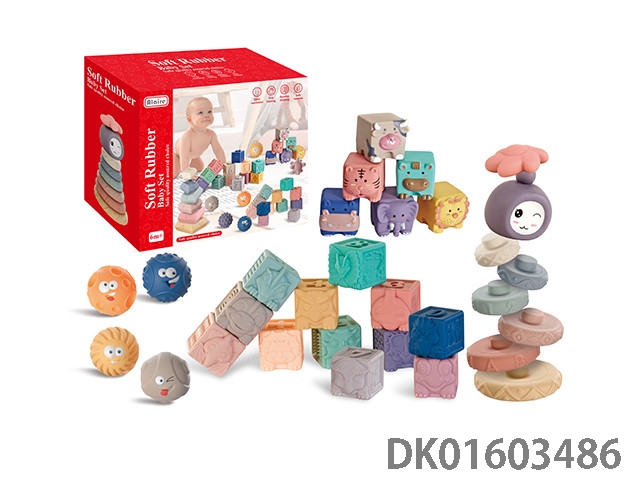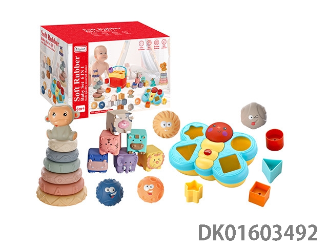 4合一软胶玩具(软胶星星叠叠乐+软胶积木 +婴儿统感求+软胶动物组合)