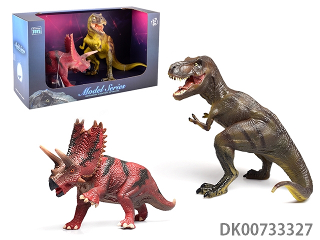 霸王龙+三角龙(实心TPR恐龙模型玩具)