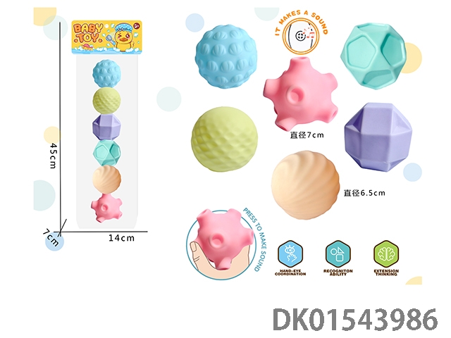 婴儿按摩球小号搪胶捏捏球*6
