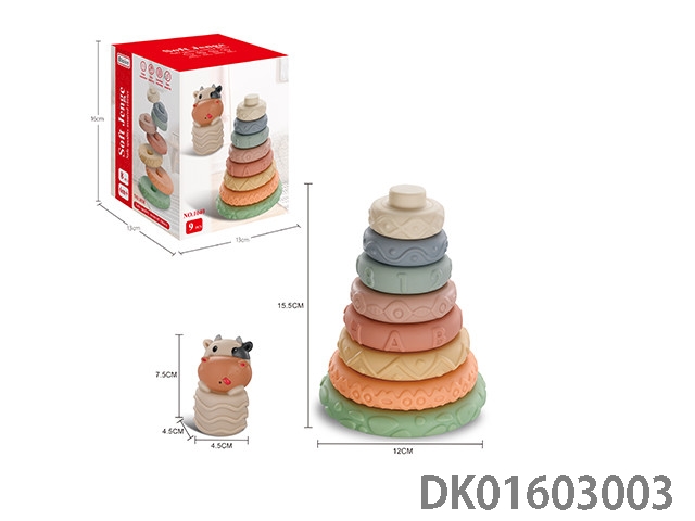 软胶(搪胶)婴幼儿益智认知叠高高/圆饼8层叠叠乐+印章小牛