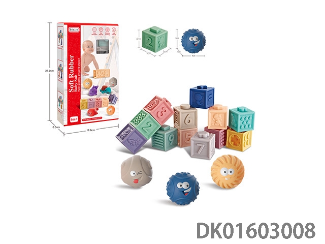 软胶(搪胶)婴幼儿益智认知积木+按摩球组合