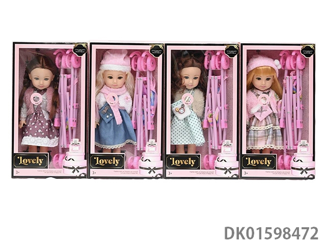 16寸活眼音乐全身搪胶娃娃带推车4款混