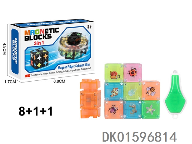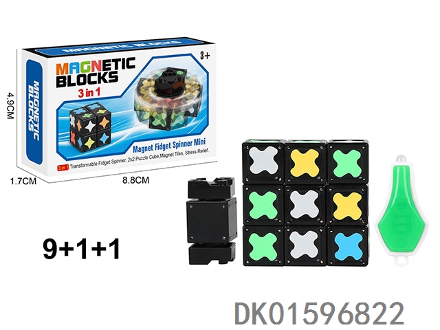 夜光磁力陀螺(尖角标)(方磁)磁力块9个+1个陀螺