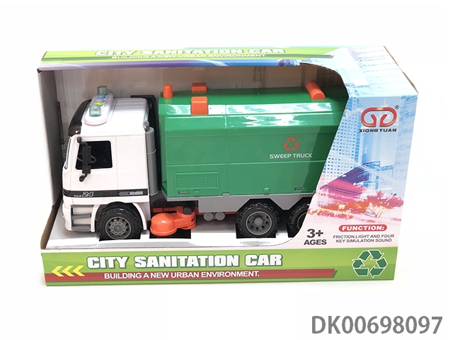 灯光惯性手动环卫车(4键配一垃圾桶)