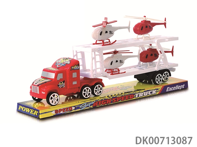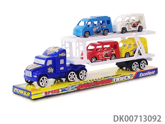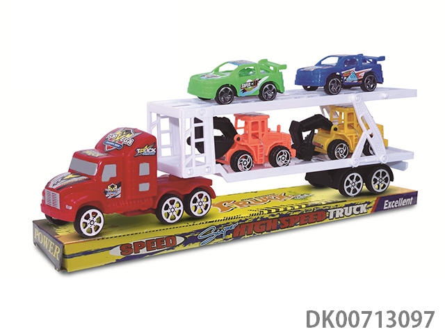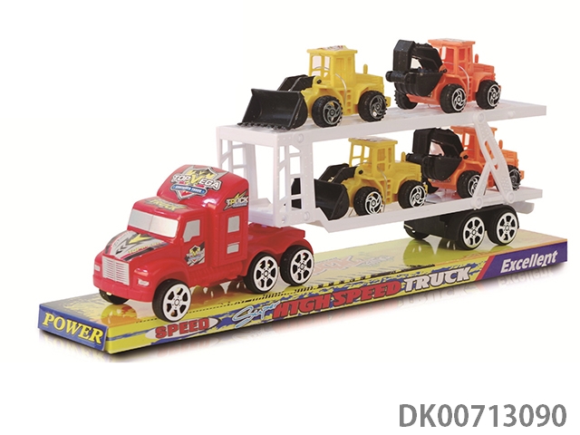 惯性拖头车载2只滑行工程车+2只滑行赛车