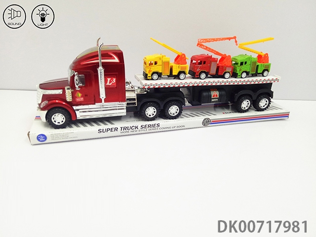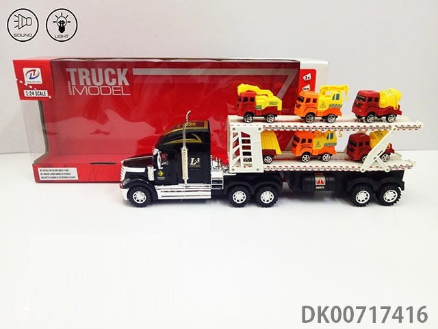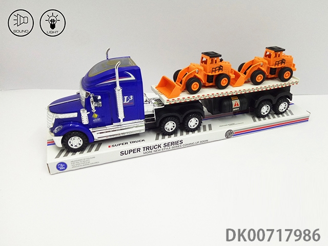 惯性拖头车拖2只滑行工程车带灯光音乐