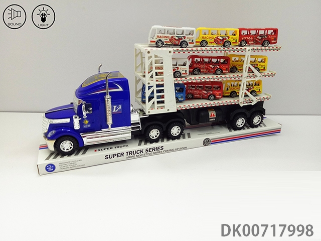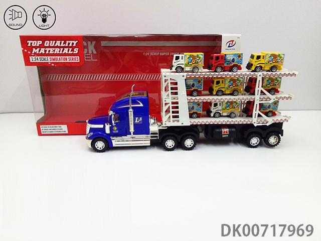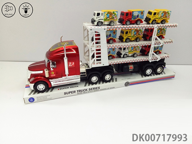 惯性拖头车拖9只滑行货柜车带灯光音乐(三层)