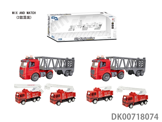 1:14惯性消防拖头车(带灯光音乐)包3粒AG13电池