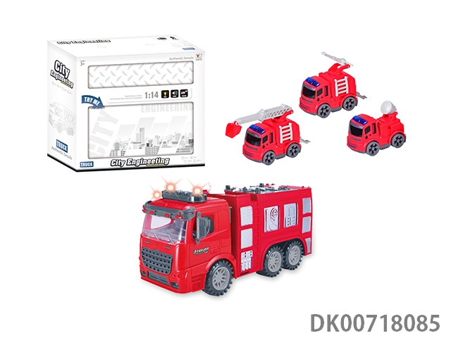 1:14惯性消防车拼盒装(带灯光音乐)包3粒AG13电池