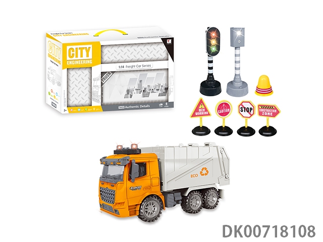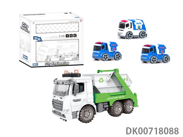 1:14惯性环卫车拼盒装(带灯光音乐)包3粒AG13电池