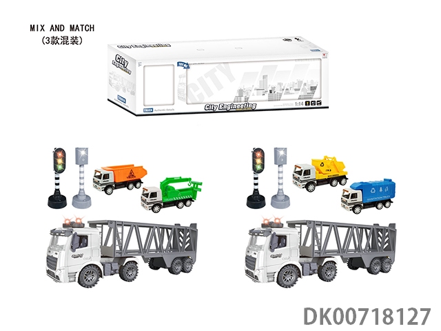 惯性环卫拖头车拼盒装(带灯光音乐)包7粒AG13电池