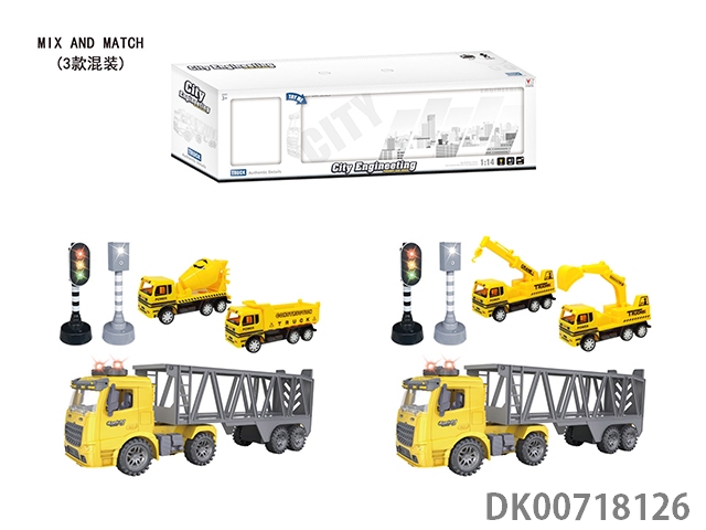 1:14惯性运输车拼盒装(带灯光音乐)包3粒AG13电池